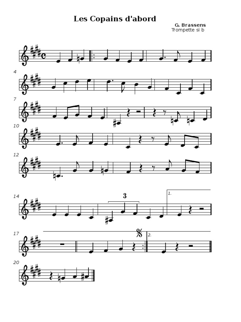 Partition Les Copains D Abord Duo De Trombones Georges Brassens
