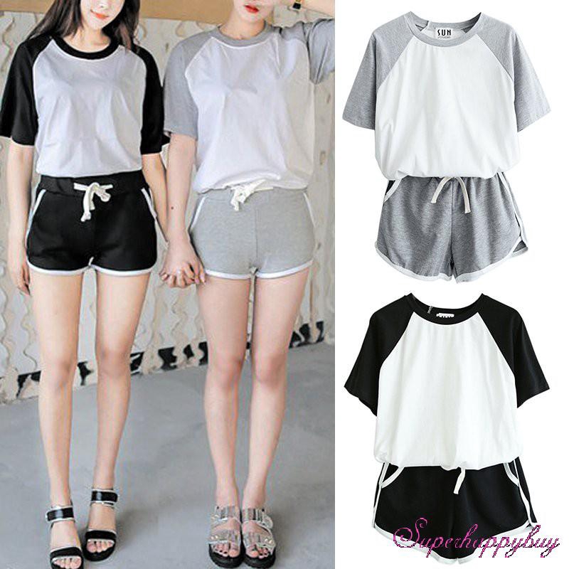 Women Casual Sports Set Gym T Shirt Shorts Set Outfits Clothing Shopee Philippines